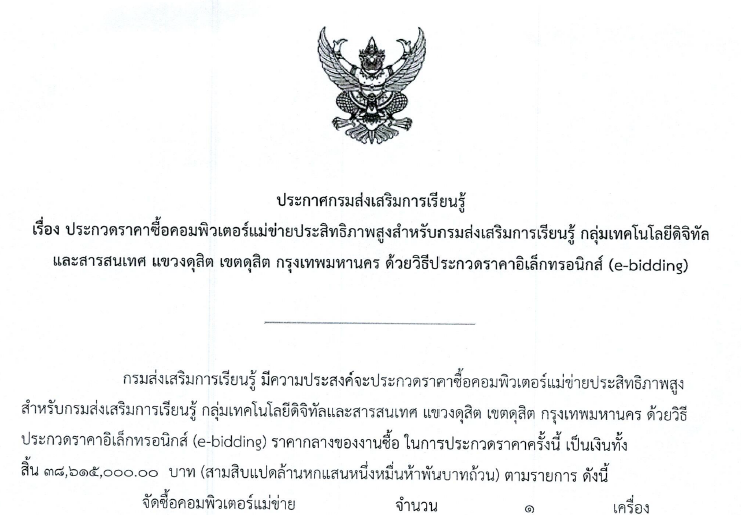 ประกวดราคาซื้อคอมพิวเตอร์แม่ข่ายประสิทธิภาพสูง สิ้นสุดรับฟังข้อคิดเห็น 3 มี.ค. 68