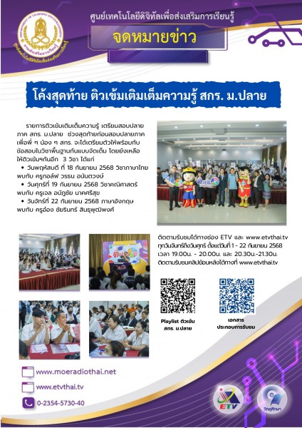 จดหมายข่าว โค้งสุดท้าย ติวเข้มเติมเต็มความรู้ สกร. ม.ปลาย