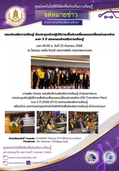จดหมายข่าว สกร.จัดประชุมประชุมเชิงปฏิบัติการเพื่อขับเคลื่อนแผนเปลี่ยนผ่านองค์กร ระยะ 5 ปี