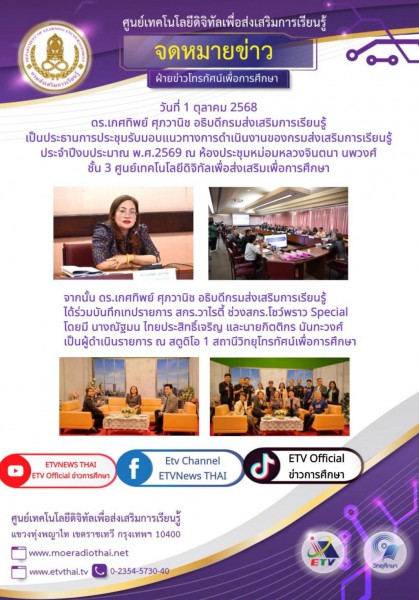 อธิบดีกรมส่งเสริมการเรียนรู้ ประชุมมอบแนวทางการดำเนินงานของกรมส่งเสริมการเรียนรู้