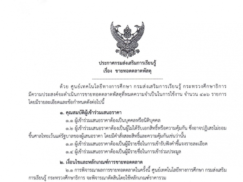 ประกาศขายทอดตลาดพัสดุ ประจำปี 2566